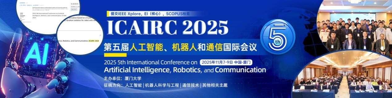 第五届人工智能、机器人和通信国际会议(ICAIRC 2025)将于2025年11月7-9日在中国厦门召开。ICAIRC 2025将围绕“人工智能、机器人和通信”的最新研究领域,为来自国内外高等院校、科学研究所、企事业单位的专家、教授、学者、工程师等提供一个分享专业经验,扩大专业网络,面对面交流新思想以及展示研究成果的国际平台,探讨本领域发展所面临的关键性挑战问题和研究方向,以期推动该领域理论、技术在高校和企业的发展和应用,也为参会者建立业务或研究上的联系以及寻找未来事业上的全球合作伙伴。